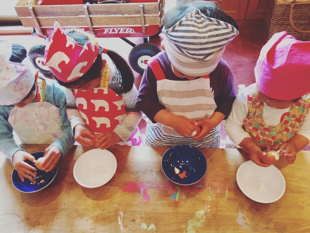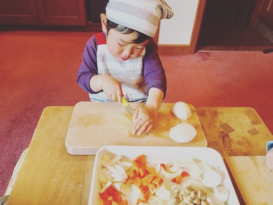 クッキングではおチビちゃん(2歳ちょっと)と3歳さんが包丁デビューをしました!おめでとう♡