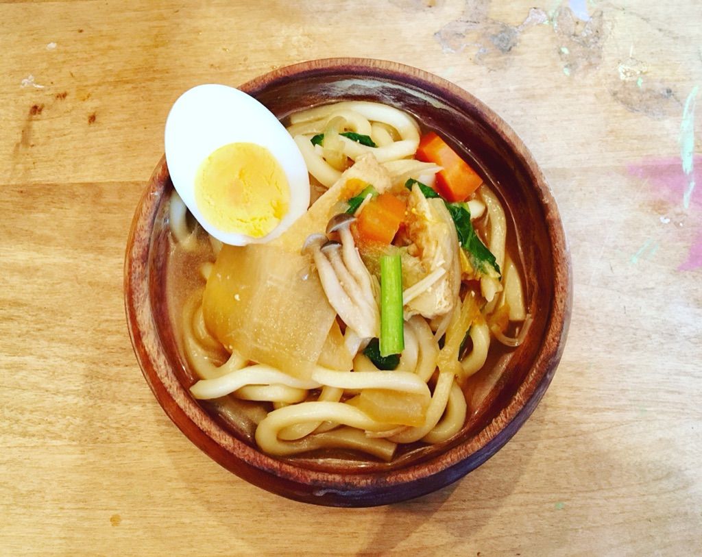 出来上がった煮込みうどんはとっっても美味しくて、皆のお腹はカエルさんの様になっていました〜。