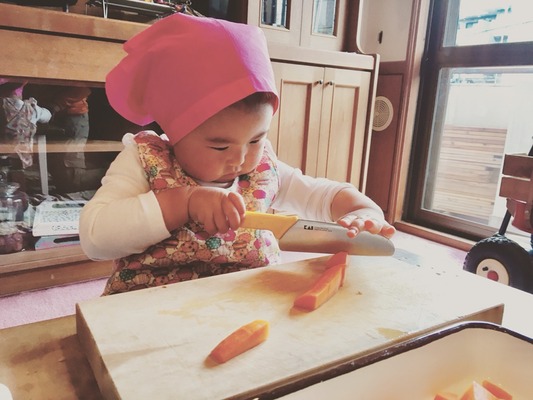 今回挑戦した2人は、他の子の包丁さばきを良く見ていたし、何よりも「包丁したい!」という意欲が溢れたので始めました。