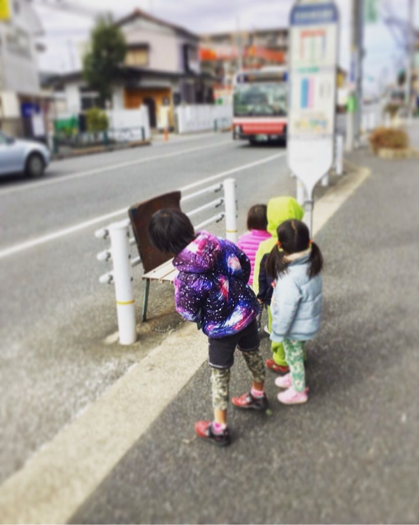 私はいつもまだかなーーと道路を覗きながら待ち、バスが見えると平然を装って子どもを迎い入れています(笑)