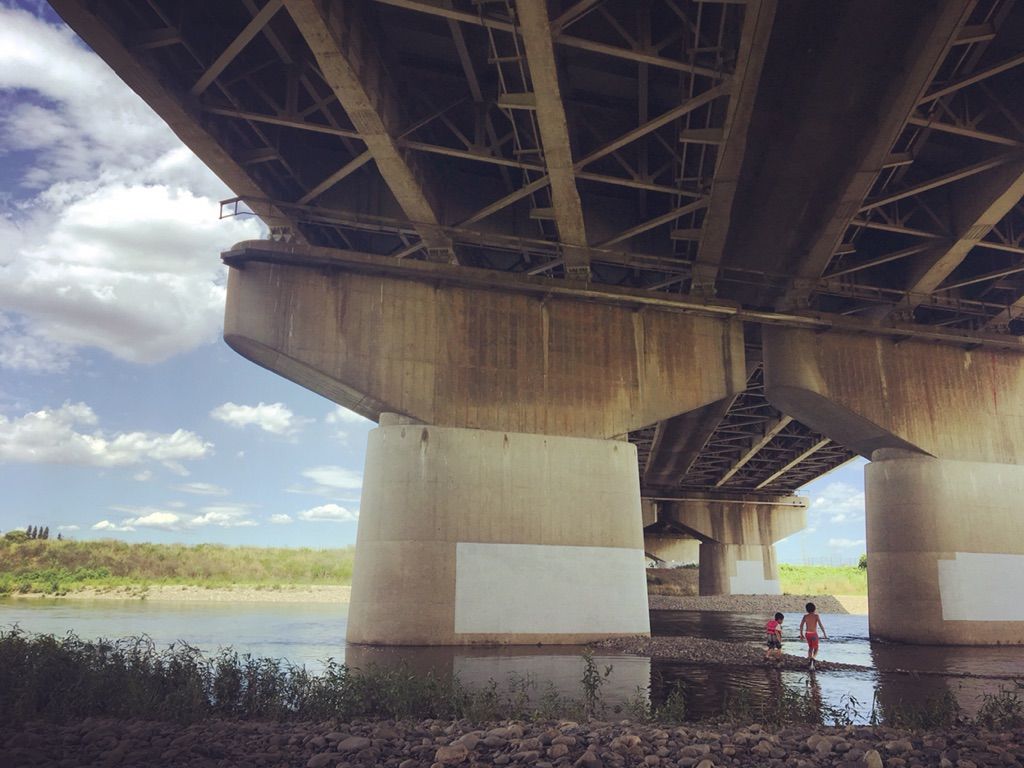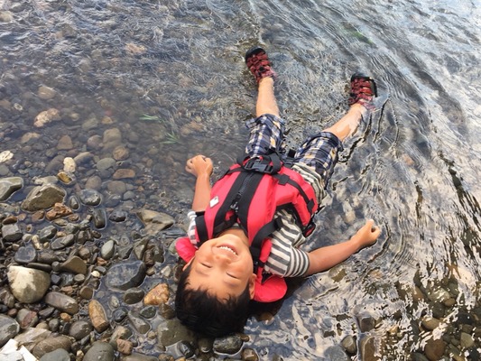 お兄ちゃんが川に寝転がっては隣に寝てみたりと・・