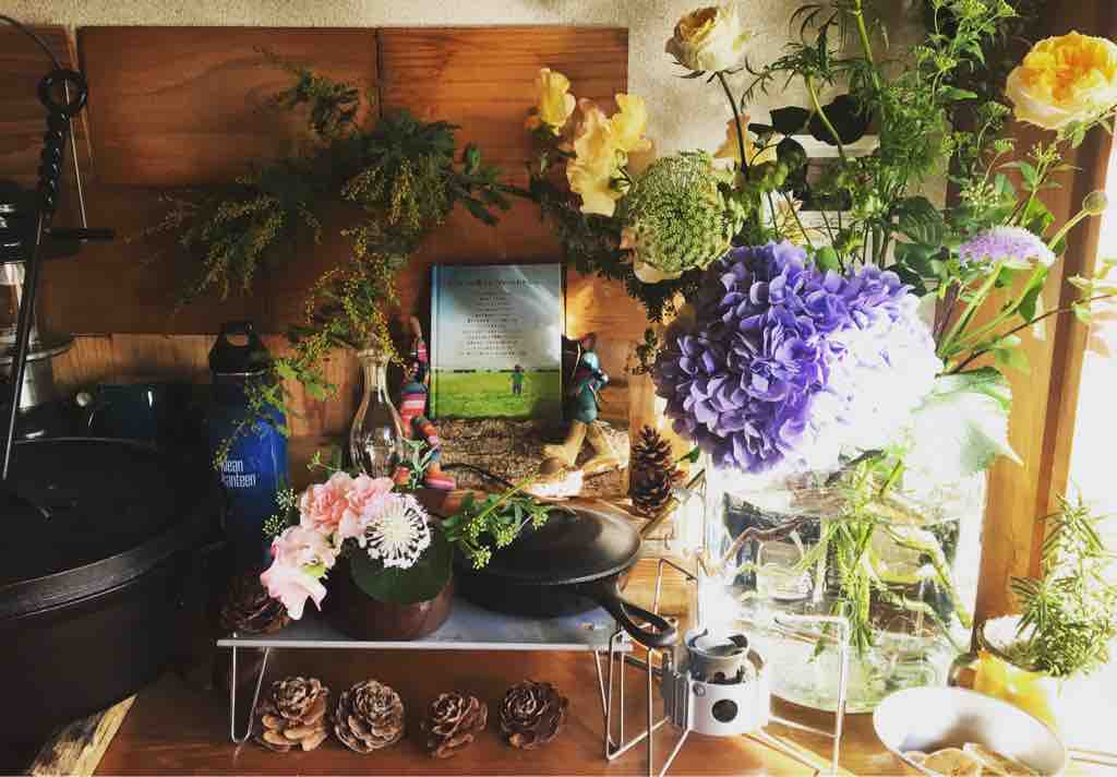 ピンクのお花が自分からのプレゼント。大きいのがパートナーから。偶然にも同じお花屋さんでした(笑)
