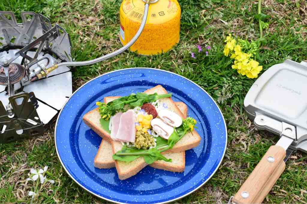 ホットサンドイッチはワンバーナーとホットサンドイッチのクッカーがあればできるので、アウトドア・クッキングを簡単に楽しむことができます。具は旬のものを入れるとより季節を楽しむことができるのでオススメです。ホットサンドイッチのクッカーは食材を炒めることもできフライパンとしても活躍しますよ〜。