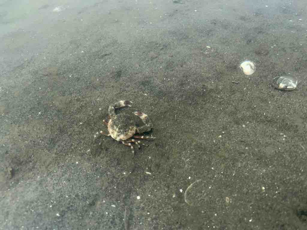 初めて見る丸い形をしたカニなどに会うことができました。