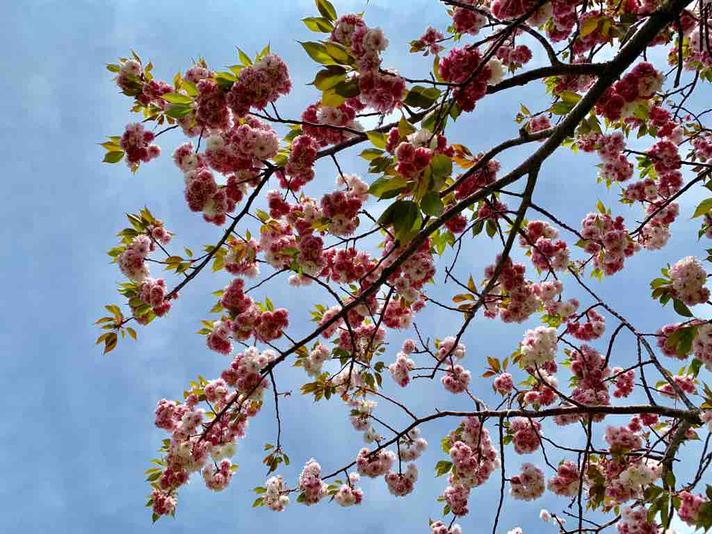 多摩川河川敷では、ソメイヨシノの次に咲く八重桜が満開で、春がくれる美しい景色の中でパスタを頂きました。