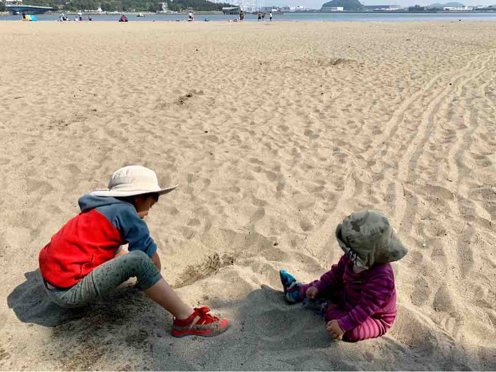 潮干狩りを終えた後も、砂浜でお砂遊びをしたり
