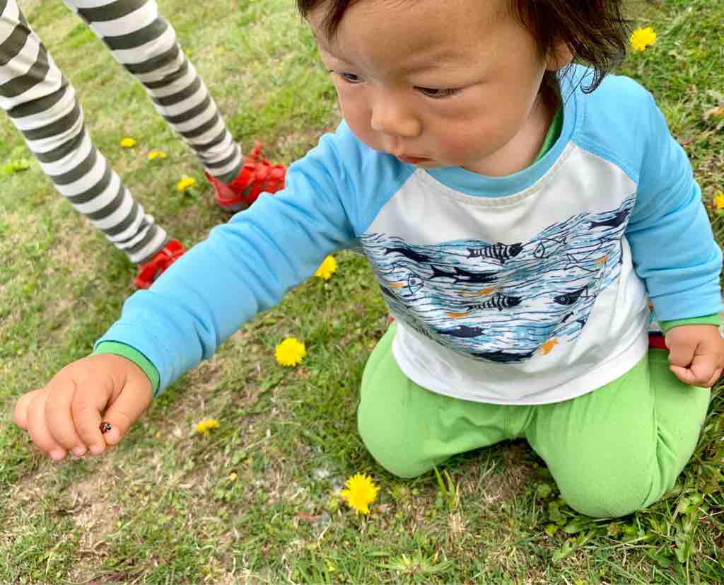 見るものすべてが初めてで、触っては存在を確認して、五感を研ぎ澄ませて「感覚ですべてをキャッチする時期」の1歳2ヶ月の子は、今日も興味の赴くままに地球と遊んでいます。